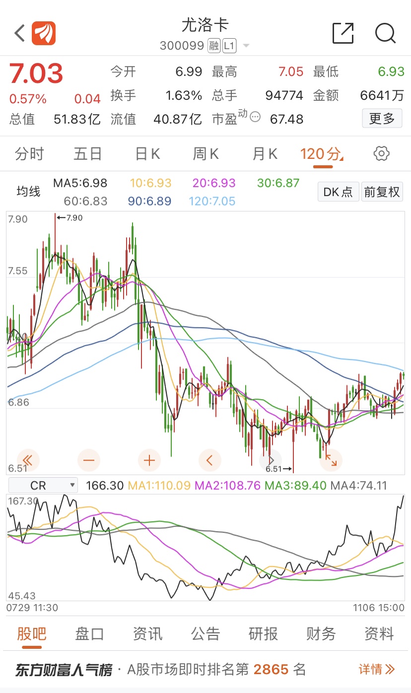 尤洛卡120分时血脉压制,收盘若不能站上7.05,果断清仓离场,明天必大幅回调