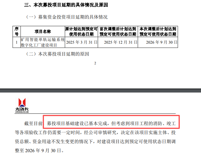 2、募投项目基础建设已基本完成,延期是因为项目工程的消防、竣工等各项验收工作仍需要一定时间。这是没办法的事,是外部流程问题,不是公司的原因。等明年投产又是一整年的利好预期。