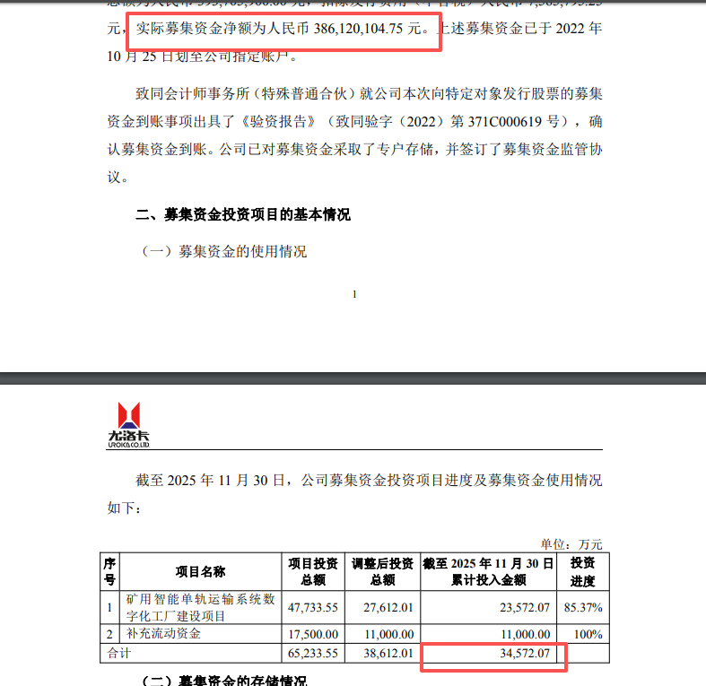 公告两大利好:1、实际募集资金3.86亿,投产只使用了2.35亿,说明资金使用充