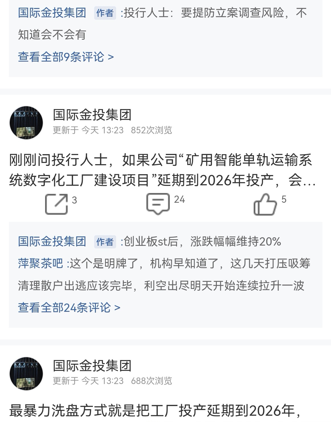 温馨提示: 1.根据《证券法》规定,禁止编造、传播虚假信息或者误导性信息,扰乱证券市场;2.用户在本社区发表的所有资料、言论等仅代表个人观点,与本网站立场无关,不对您构成任何投资建议。用户应基于自己的独立判断,自行决定证券投资并承担相应风险。《东方财富社区管理规定》