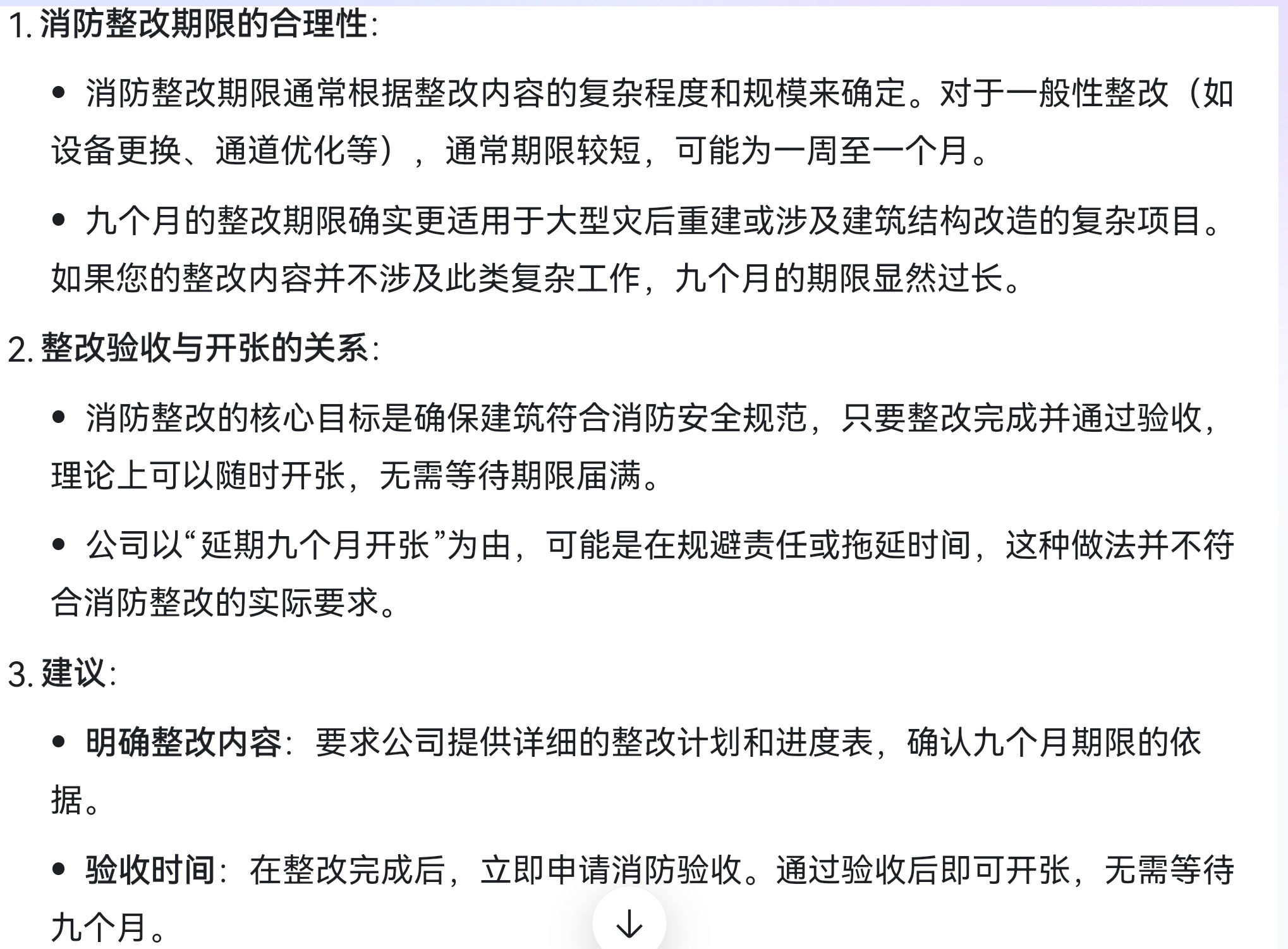 咱参与过类似大型基地建设,重大消防整改通常在三个月内,九个月通常是大型灾后重建…