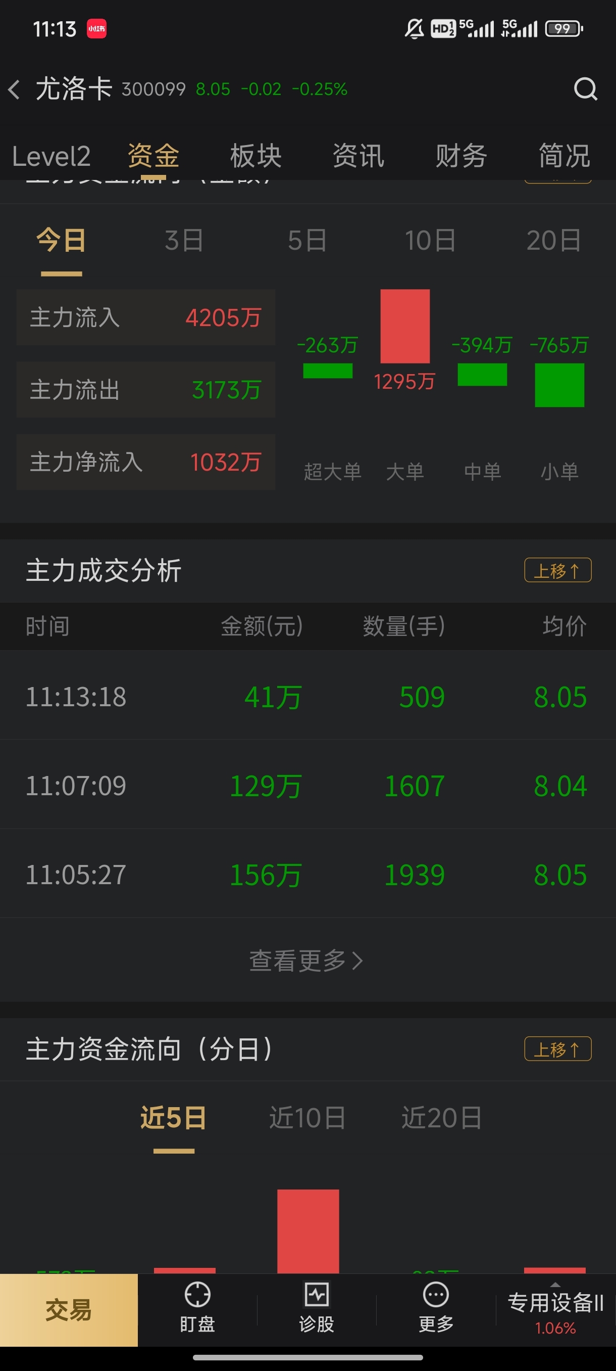 $尤洛卡(SZ300099)$ 主力今天又买了1000多万