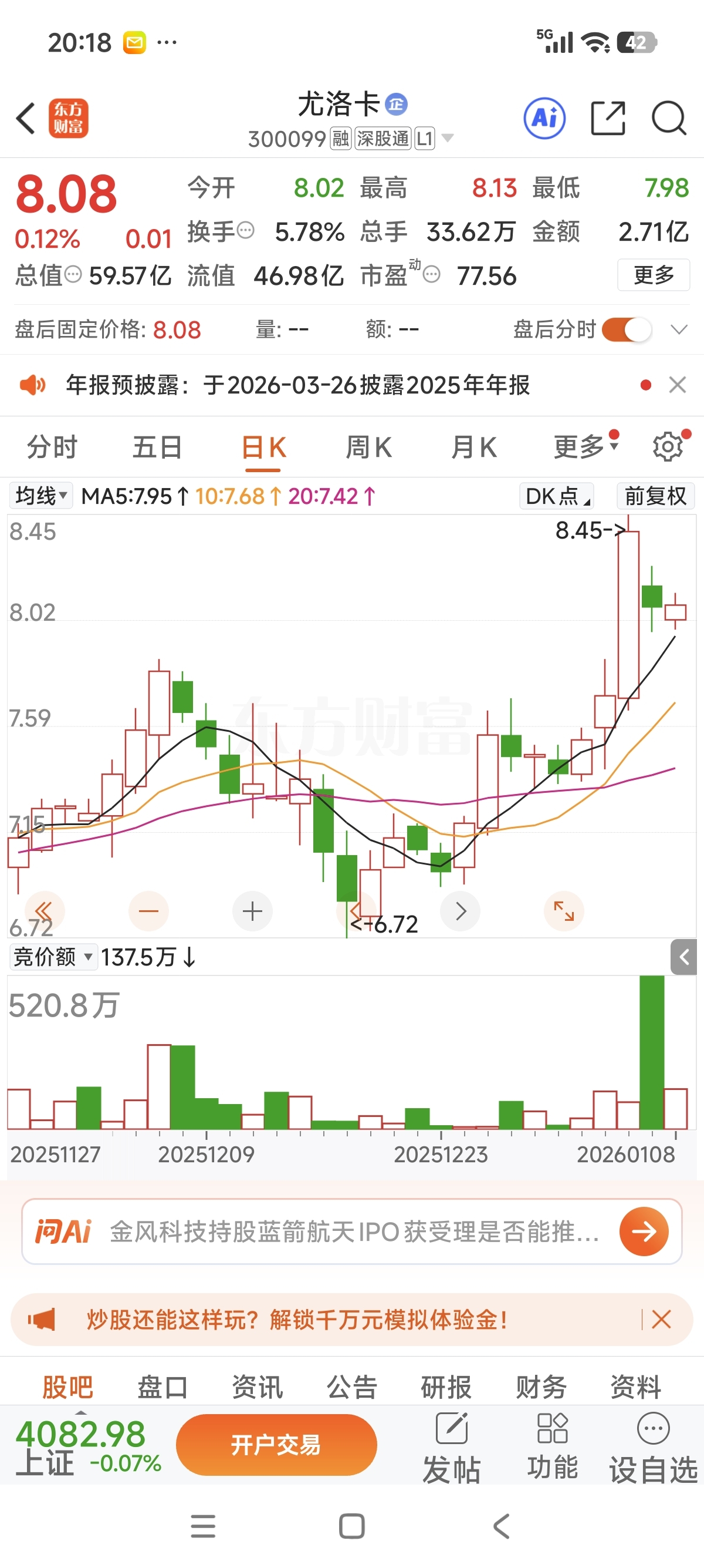 $尤洛卡(SZ300099)$ 请问东财换手率和成交量是正比吗?为什么?1月6号的换手率是16%成交量这么小,显示为一点点红柱子,1月7号换手率8,成交量柱这么高?