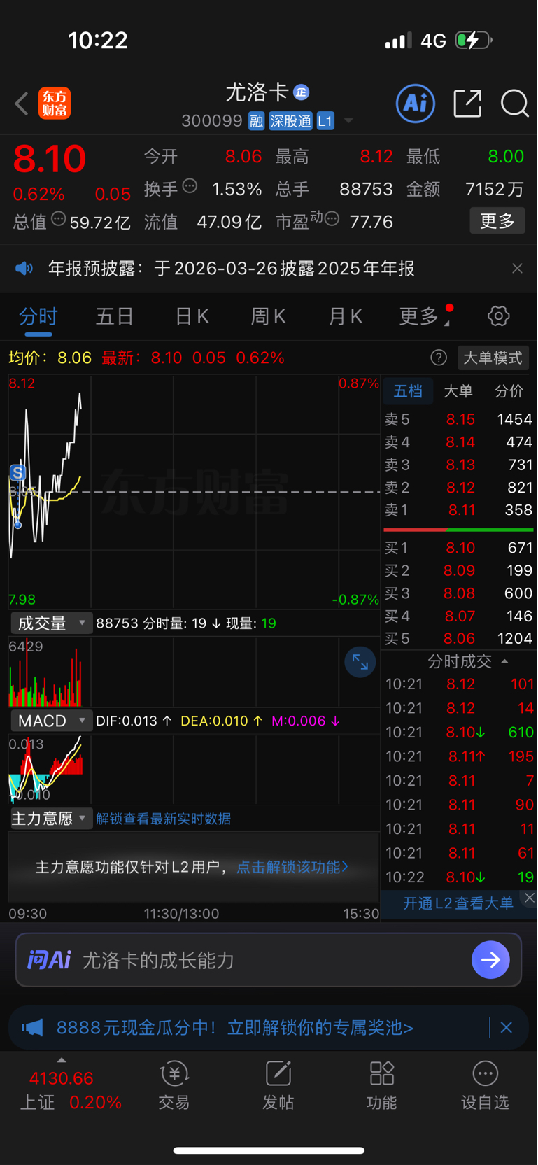 $尤洛卡(SZ300099)$ 一卖就拉???就差我这点筹码吗