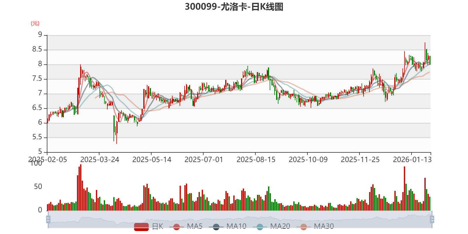 中证智能财讯尤洛卡(300099)1月28日晚间披露2025年度业绩预告,预计2025年归母净利润1.8亿元至1.9亿元,同比增长89.32%-99.84%;扣非净利润预计8000万元-9000万元,同比下降7.65%-17.91%。以1月28日收盘价计算,尤洛卡目前市盈率(TTM)约为31.04倍-32.77倍,市净率(LF)约2.58倍,市销率(TTM)约10.26倍。