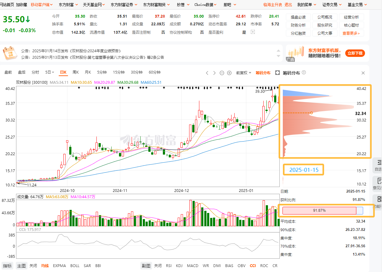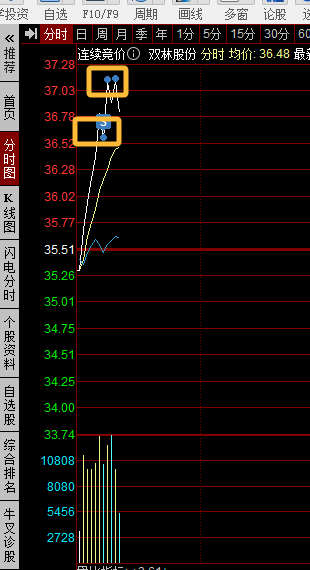 从近三日筹码线看,下部筹码扰动较大,获利盘回吐明显。若破位34.98急洗效果更好,这样可能就是日线级别调整。若在5天线之上运行,那趋势仍完好,不产生有效的日线顶分型