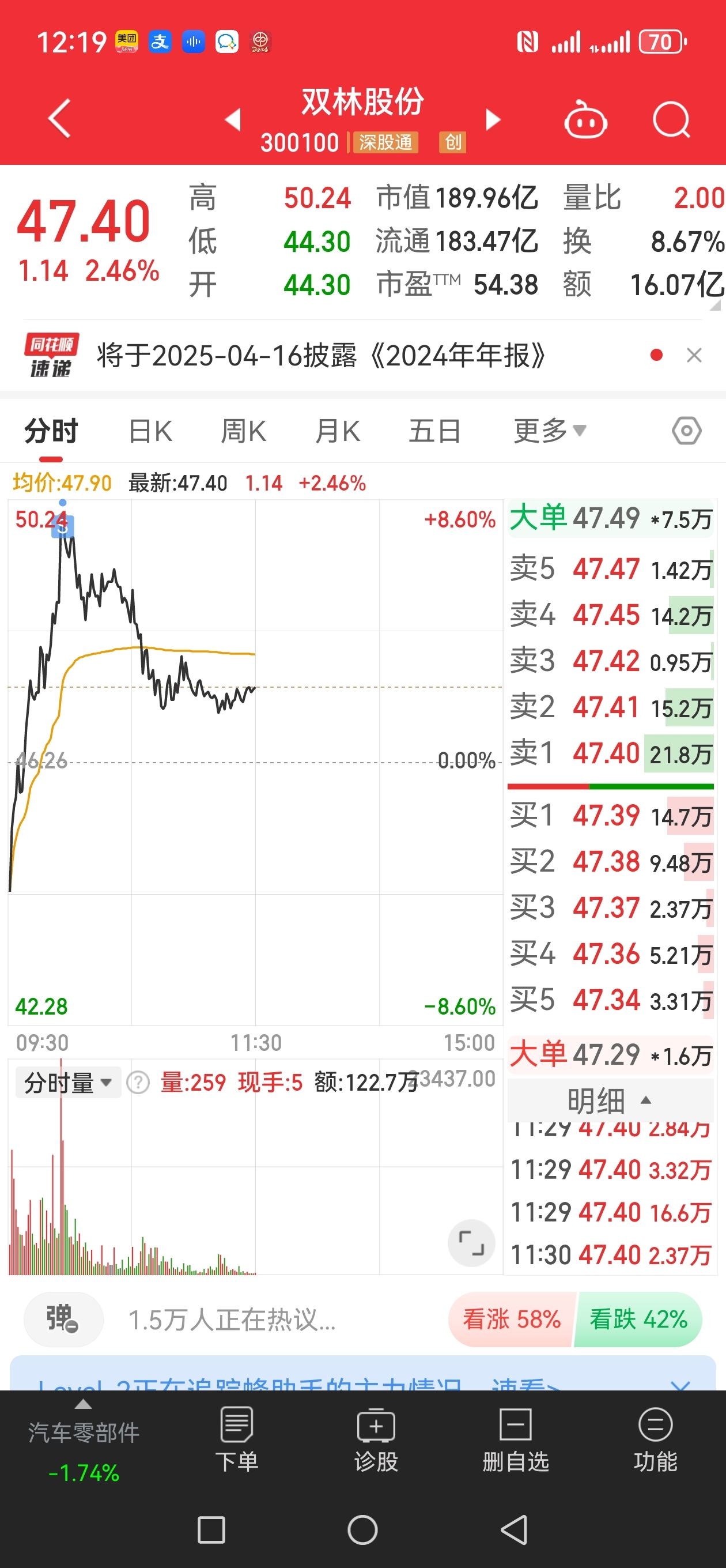$双林股份(SZ300100)$ 我50.01分清仓了,不知道对不对,有点后悔了