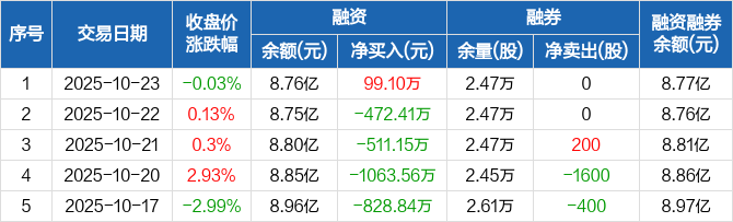 双林股份:融资净买入99.1万元,融资余额8.76亿元(10-23)
