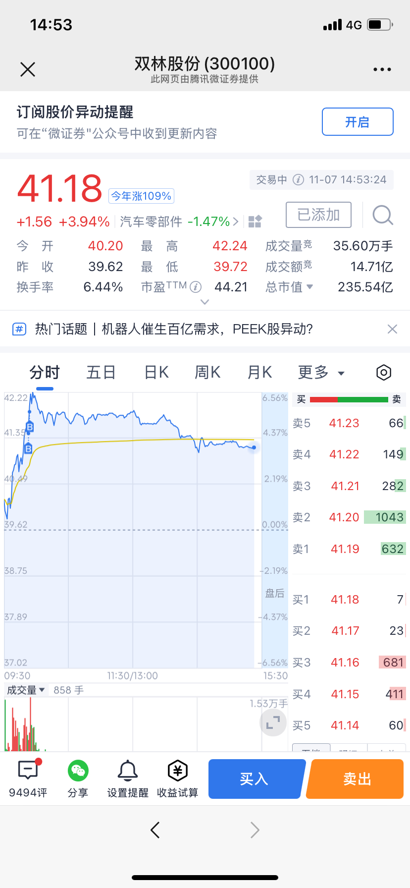 $双林股份(SZ300100)$ 追高后悔,应该坚持低吸策略的,早上低吸新能源就好了