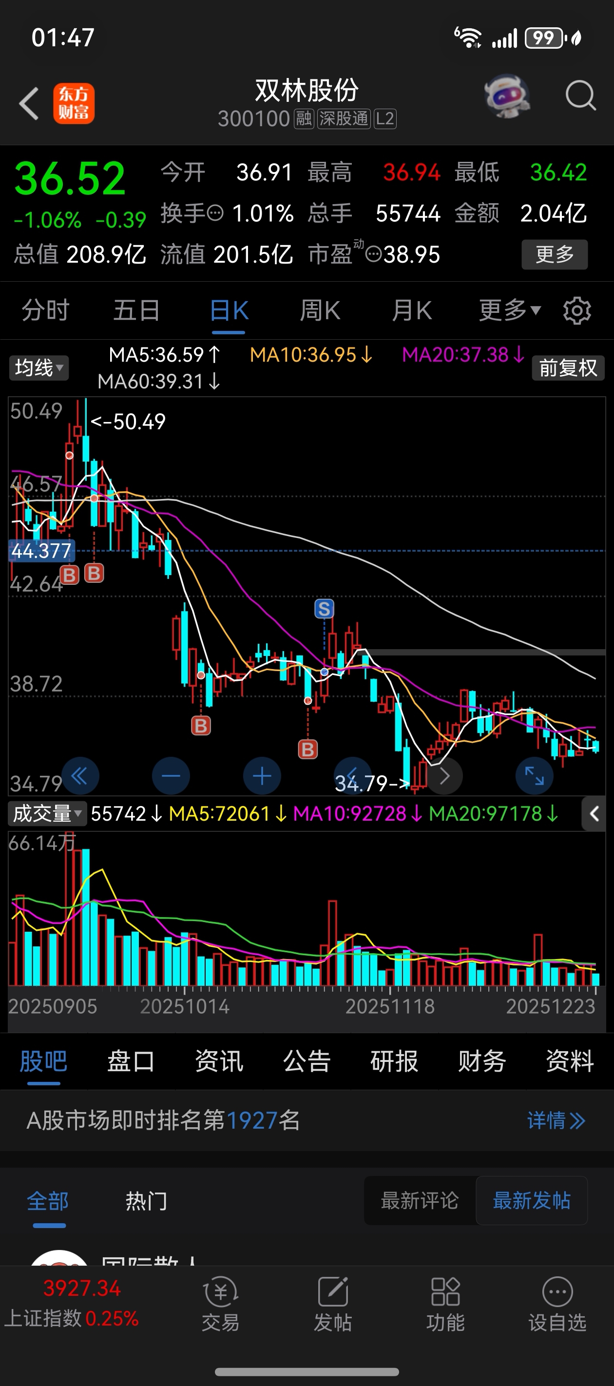 $双林股份(SZ300100)$ 主力你大发慈悲吧,44的成本太难了