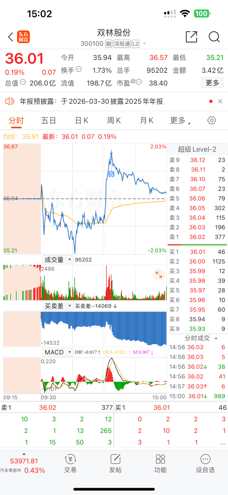$双林股份(SZ300100)$ 这个点卖差不多满意了 ,还好没和割,是你让我今天红盘了 谢谢里面的大哥大姐不杀之恩