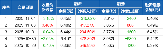 振芯科技:融资净偿还316.02万元,融资余额6.45亿元(11-04)