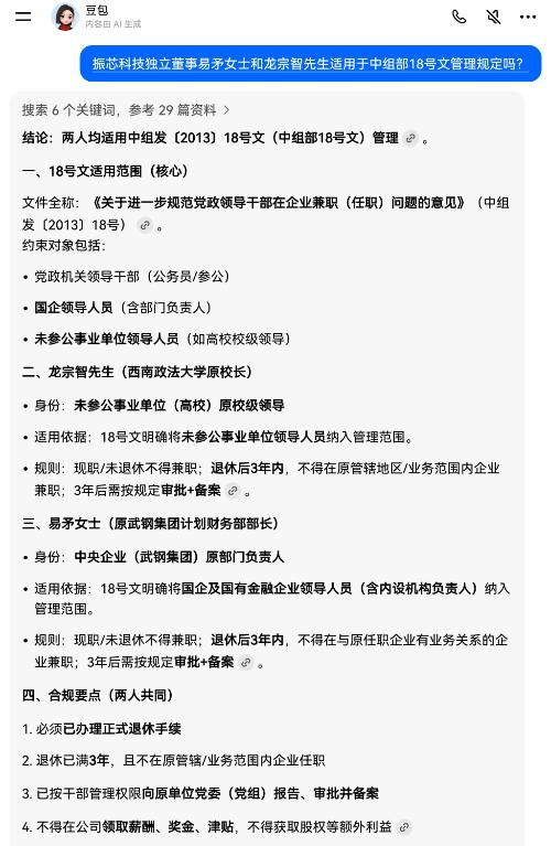 大股东提名三位董事当选,管理团队三位当选(其中包含一位职工董事),所以非独立董事是三对三,独立董事大股东提名两位当选,小股东提名1位当选,不存在谁赢谁输,因为非独立董事是三对三,独立董事都要客观中立,不会代表大股东还是管理层利益的。但从投票结果来看,中小股东压倒性的站在管理层一边,在历史少见,有25%中小股东投票给管理层,另外别忘了大股东持股29%背后还有49%是管理层持股,这部分投票被大股东给绑架了,真实结果应该是管理层全胜,只是制度设计上的问题。大股东除了自己的票以外,没人支持。从股价最终表现来看,大跌,明显对管理层的出局表达了负面反馈。以上都是客观情况,不要带情绪,至于股吧里面一堆什么要对管理层清算,纯粹二百五,我们中小股民只看股价表现,如果管理层全部出局,周五肯定20厘米跌停了,振芯历史上几次历史大跌,一次何燕重新认定实际控制人,一次国腾解散失败,大家看看历史,再来发言,都是很客观的。最后我分析这个事情还没完,中组部18号文规定70岁以上不得企业任职独董,大股东提名的独董龙宗智先生和易矛女士都超过70岁,后续得不到交易所任职资格审查,不一定怎么回事,静待后续
