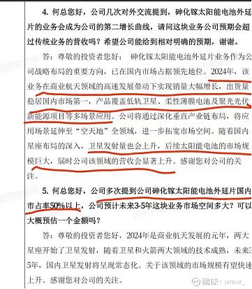 3、乾照光电国内砷化镓市占率50%+。 国内做卫星太阳能片的中电科18所(电科蓝天)和 航天科技811所的砷化镓外延片主供均为乾照光电,乾照光电在国内卫星太阳能外延片市场市占率超50%,供货价格接近20万/m,毛利率超50%,23年卫星收入1.2亿,24年星网发射进度很慢情况下收入也接近2亿,而卫星太阳能砷化镓下一代薄膜砷化镓国内仅乾照光电有成熟产品并量产供货!砷化镓外延片技术难度极高,验证周期极长(至少五年以上)。