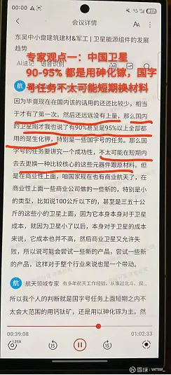 2、星网和千帆未来十年,砷化镓路线是唯一量产应用路线:国内目前 98% 的在轨卫星采用砷化镓太阳能板(包括已发射的星网和千帆),另外 2% 是硅基路线主要集中在低寿命(<3 年)的测试卫星。钙钛矿路线目前仅用于若干个位数测试卫星,测试时间不足一年(至少十年的严格测试才具备大规模商用),钙钛矿发电效率仅为砷化镓路线的70%,且体积大、发射成本高、抗辐射和抗极端温度能力不足、寿命低,预计后续仅在<2年寿命的测试卫星使用。starlink星链二代星也是砷化镓路线,砷化镓路线后续将从锗底砷化镓向薄膜砷化镓进化!
