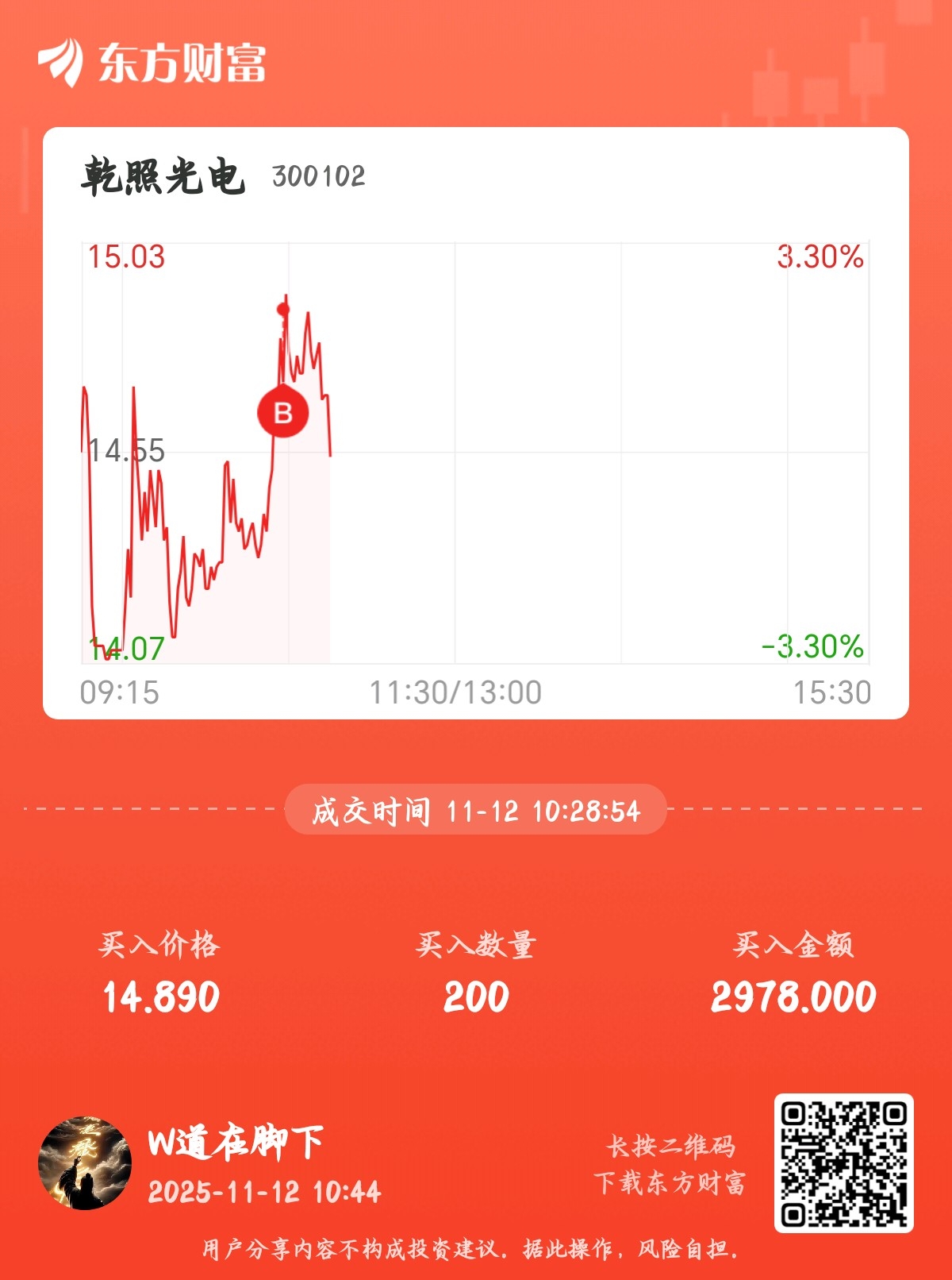 $乾照光电(SZ300102)$ 我比王小雨还特么厉害