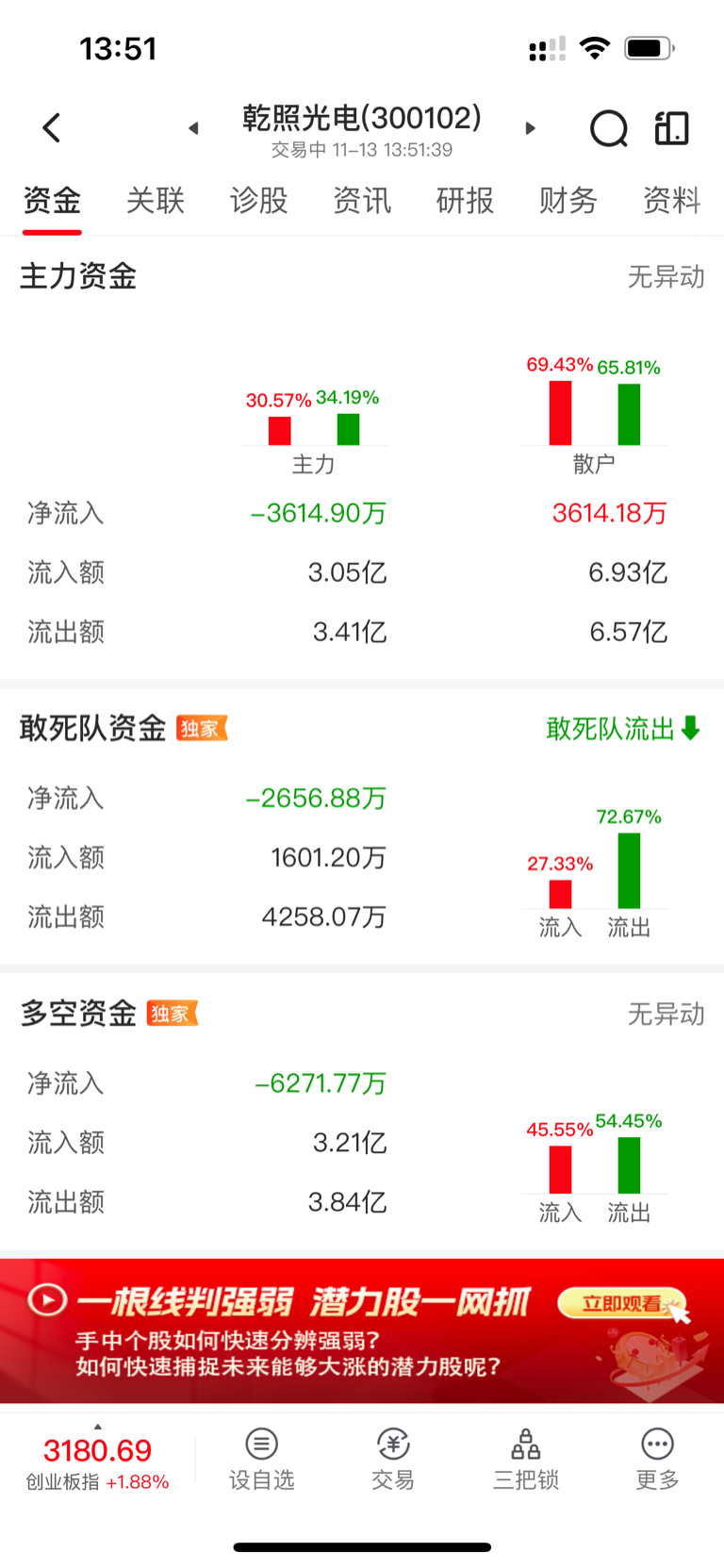 $乾照光电(SZ300102)$ 敢死队跑了2千多万…