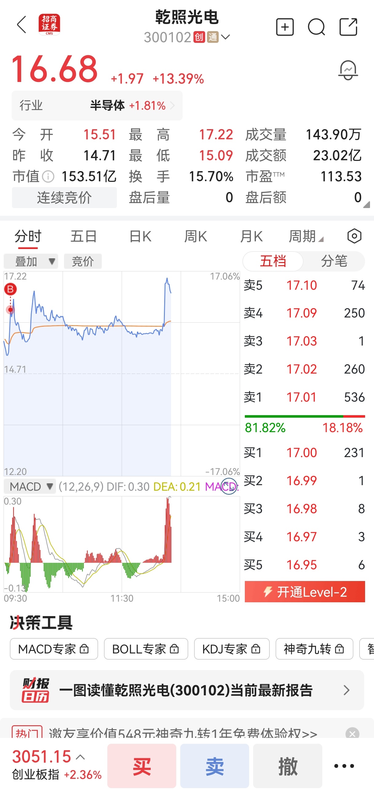 $乾照光电(SZ300102)$ 15.97买的,假突破?