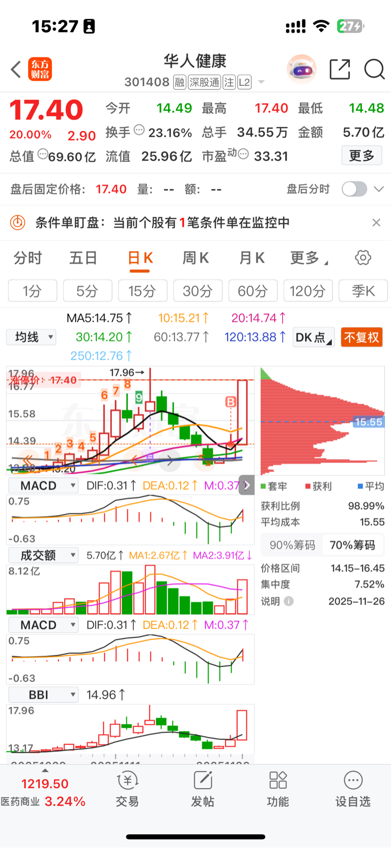 昨天拿了三个票,就这个票操作失误,我以为他走的航天科技,我看板块太弱,就七个点卖