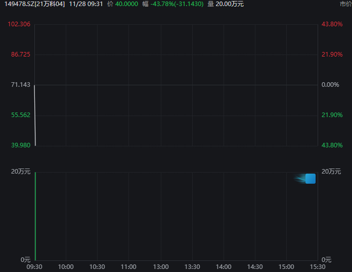 万科债盘初大跌,“21万科04”跌超43%,“21万科06”跌超38%,“22万科02”和“21万科02”跌超20%,四只债均盘中临时停牌。
