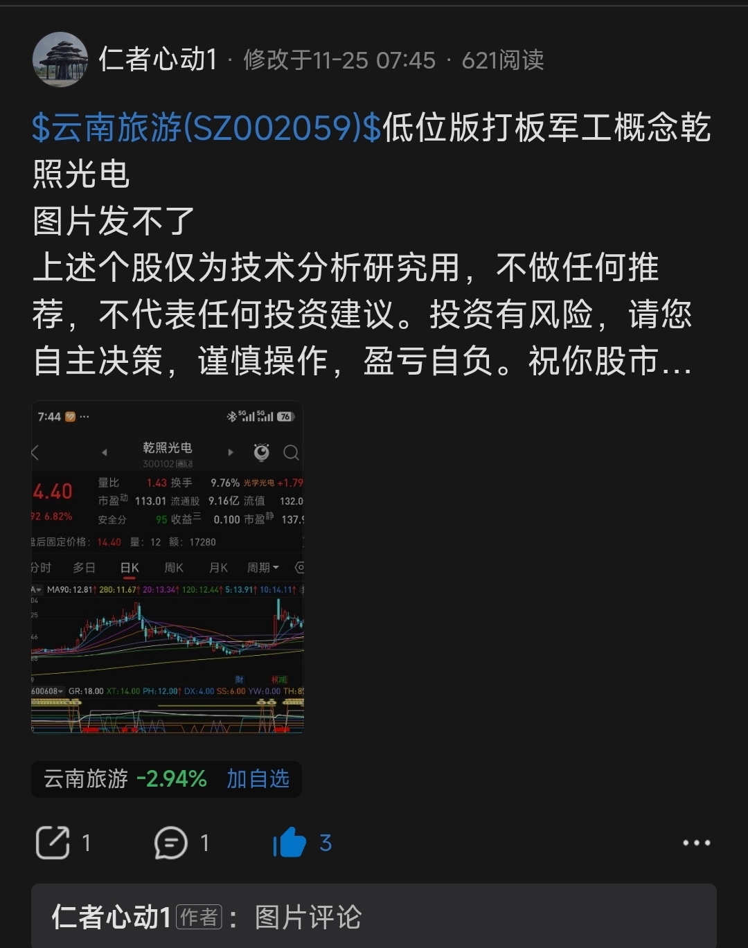 $乾照光电(SZ300102)$ 11月25日推荐乾照光电,可惜卖飞了