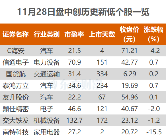 东方财富Choice数据显示,今日有8只个股盘中股价创历史新低。