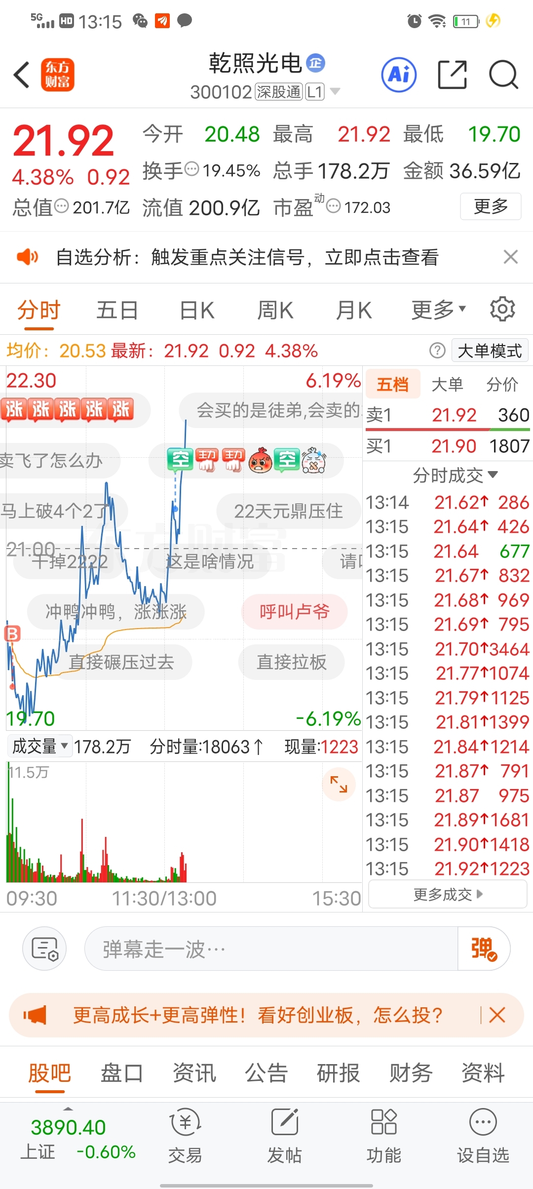 $乾照光电(SZ300102)$ 预想22附近看看还是卖飞了