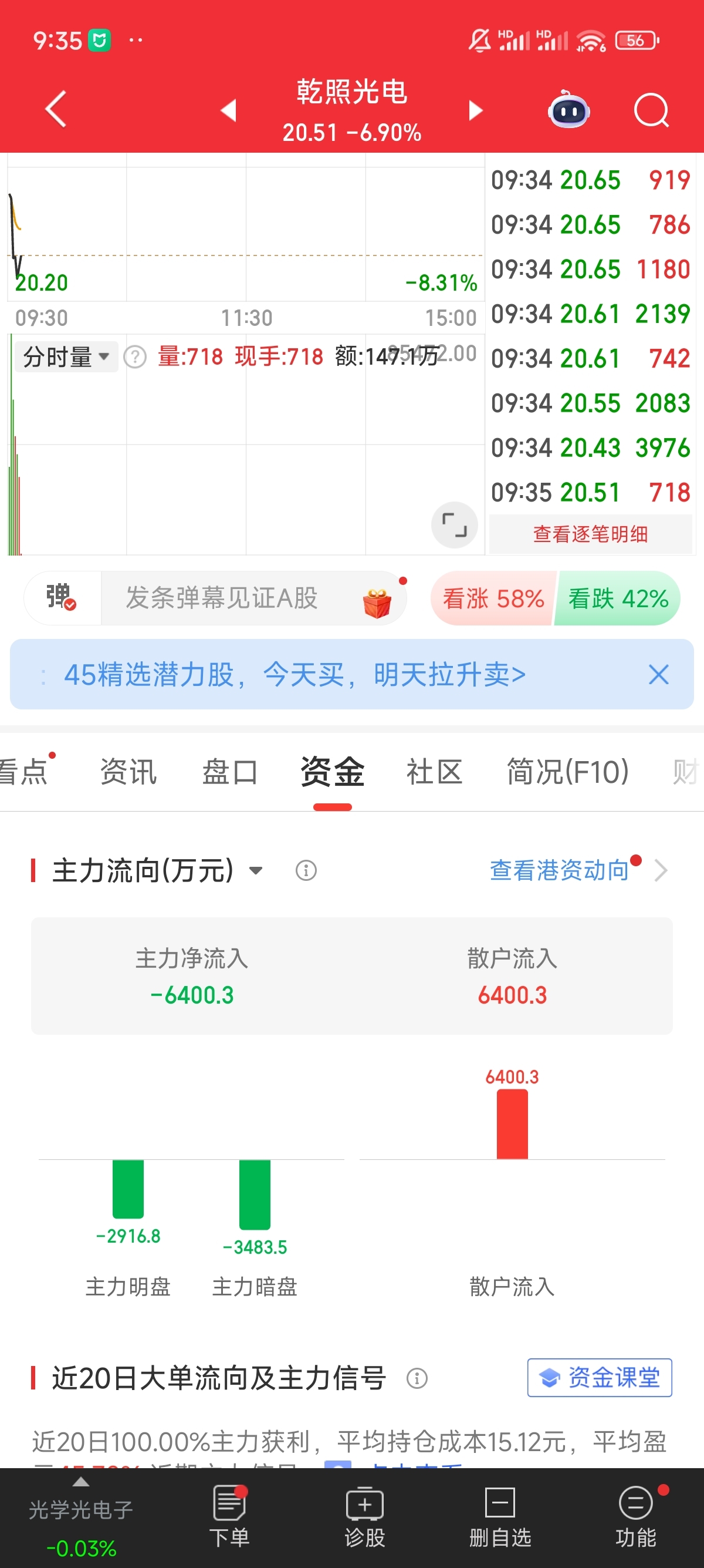 $乾照光电(SZ300102)$ 现在做今日下影线,不怕调整
