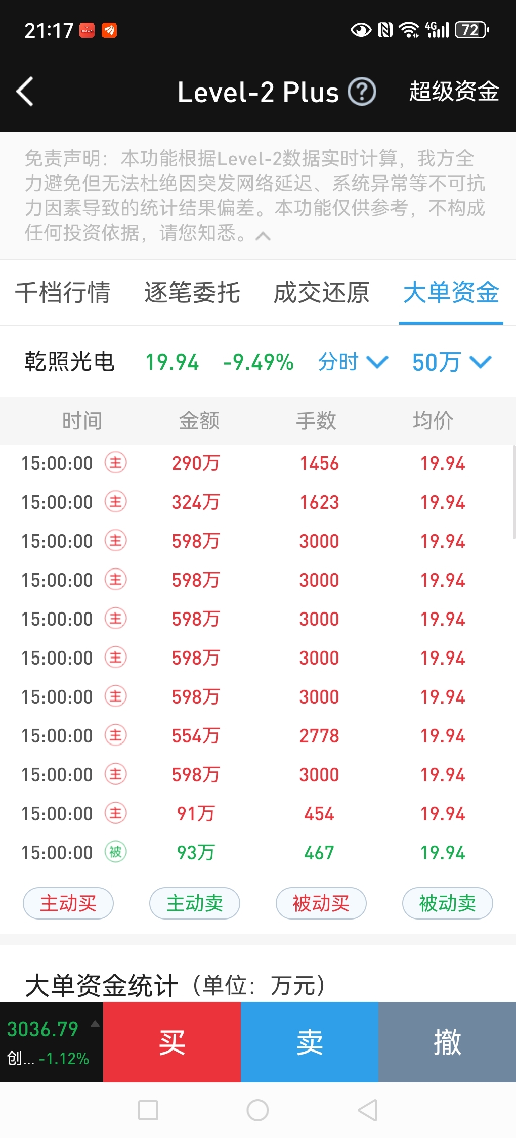$乾照光电(SZ300102)$ 六个3000手五佰多万,吃了三千多万货,谁这么大手笔。