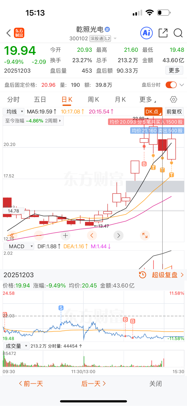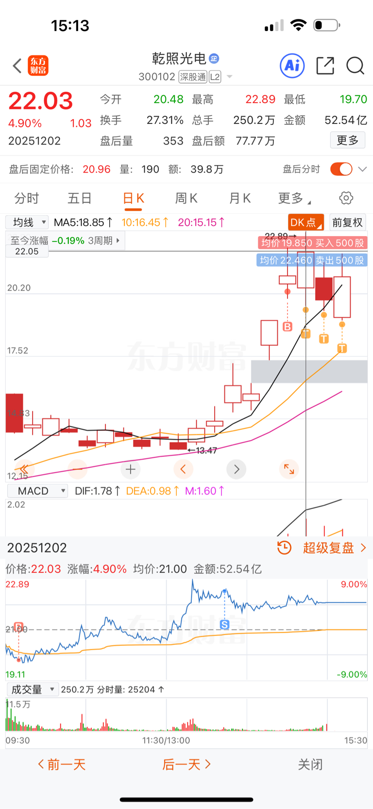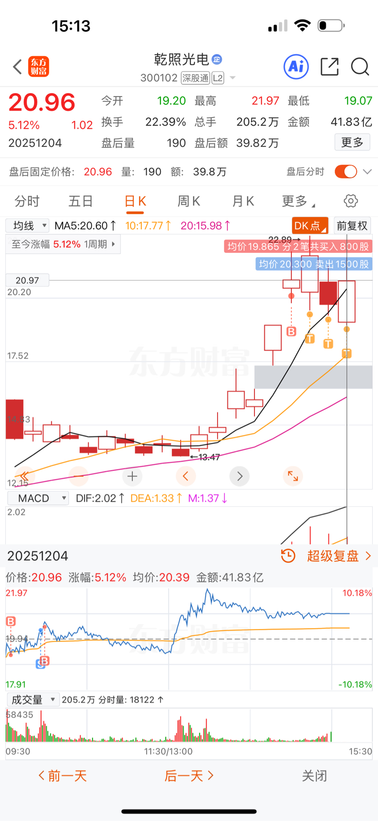 $乾照光电(SZ300102)$ 进来4天,每天都是同样的操作,看着股价下来了,每天都赚钱。神奇的股票