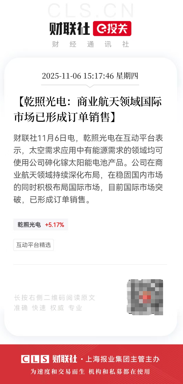 盘后利好+2,国家放宽两用物质出口。有利于乾照更好的拓展国际市场。另外之前董秘有