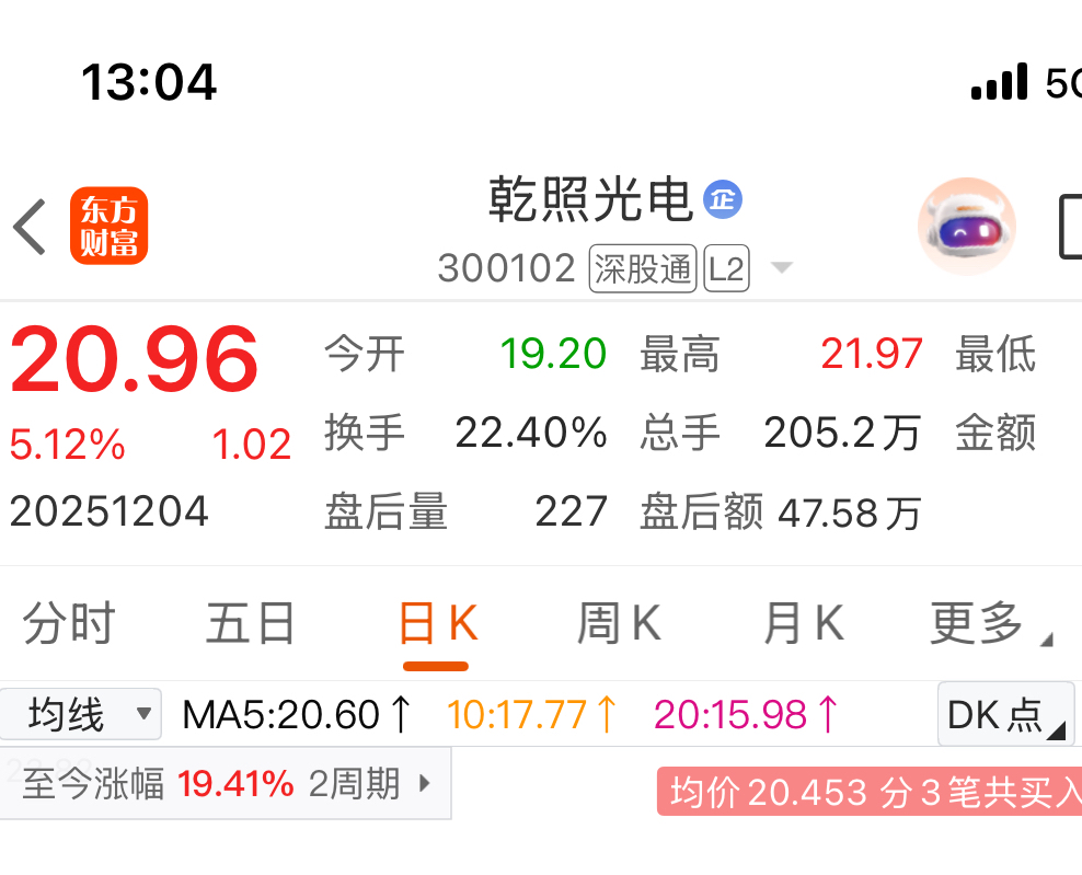 $乾照光电(SZ300102)$ 无语,昨天买少了。