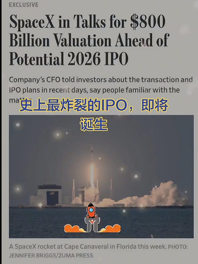 $乾照光电(SZ300102)$ $航天发展(SZ000547)$ 史上最大非上市公司估值——马斯克SpaceX,超过OpenAI的5000亿美元估值!近期国内政策密集发布商业航天扶持,火箭发射源源不断,2026年一定是商业航天元年,而2025年这个跨年商业航天大概率是跨年题材之一。另外最近市场暗线是福建,带有福建叠加商业航天,更有可能走出超级行情!