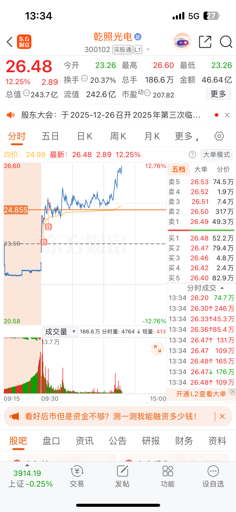 $乾照光电(SZ300102)$ 涨停应该没问题