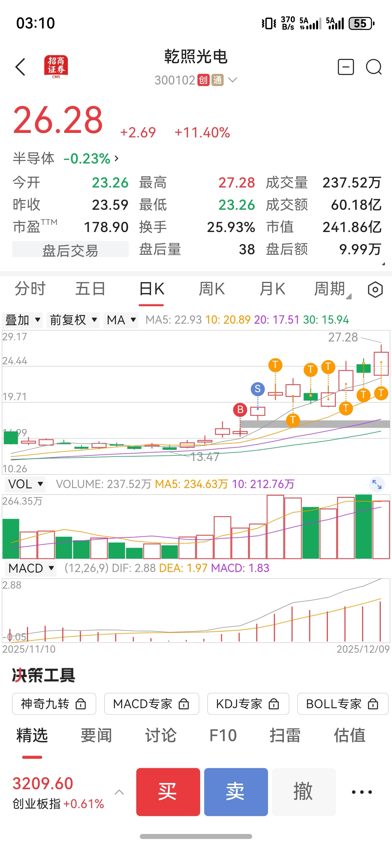 $乾照光电(SZ300102)$ T飞了,高处不胜寒啊