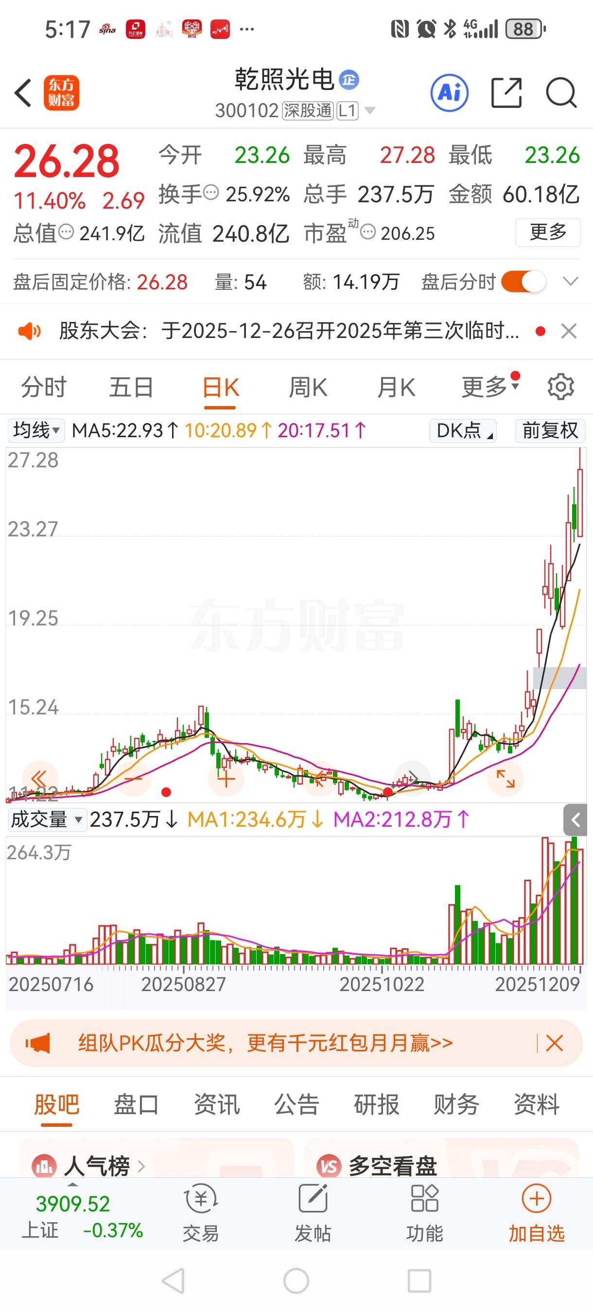 $乾照光电(SZ300102)$ 短期涨了好多,明天不动了吧