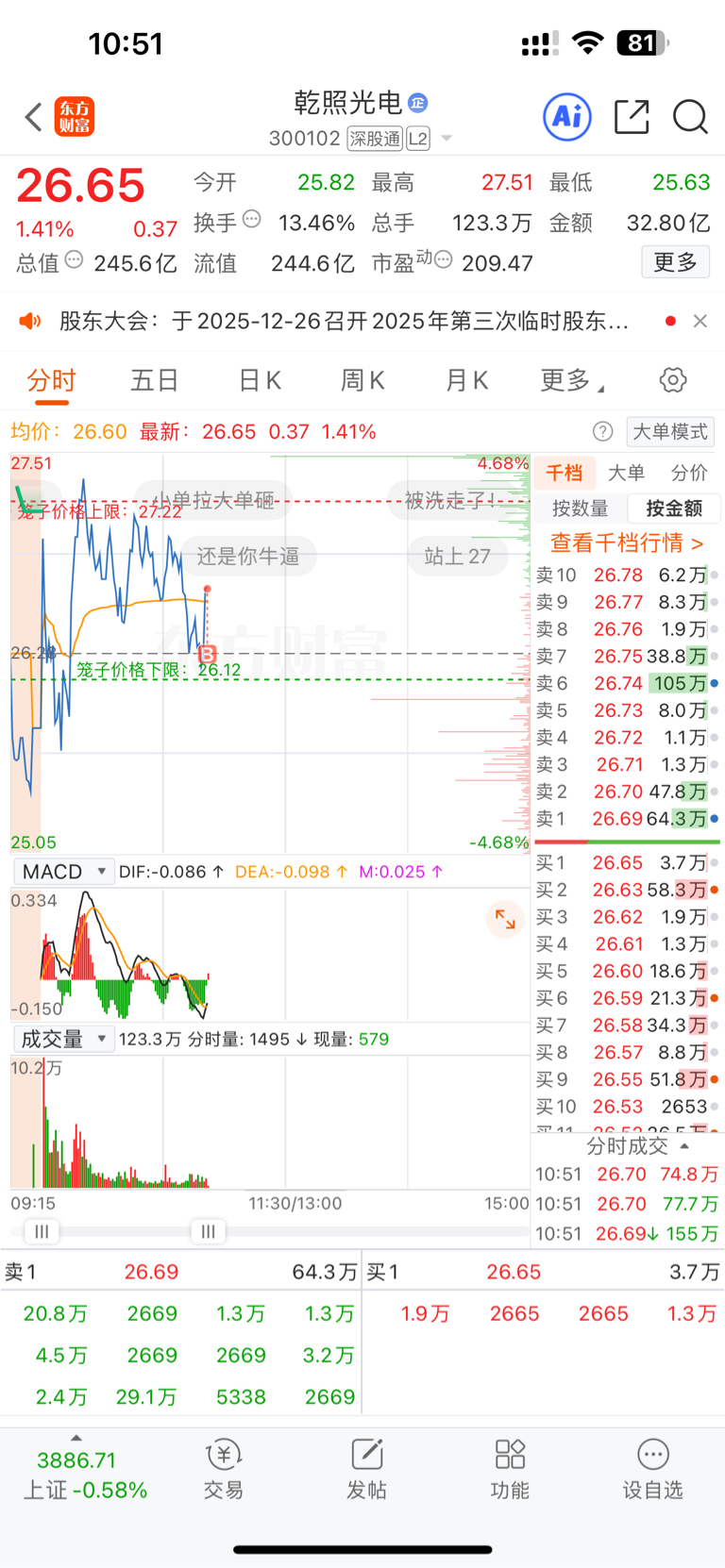 $乾照光电(SZ300102)$ 明少买入乾照光电,商业航天叠加福建板块。