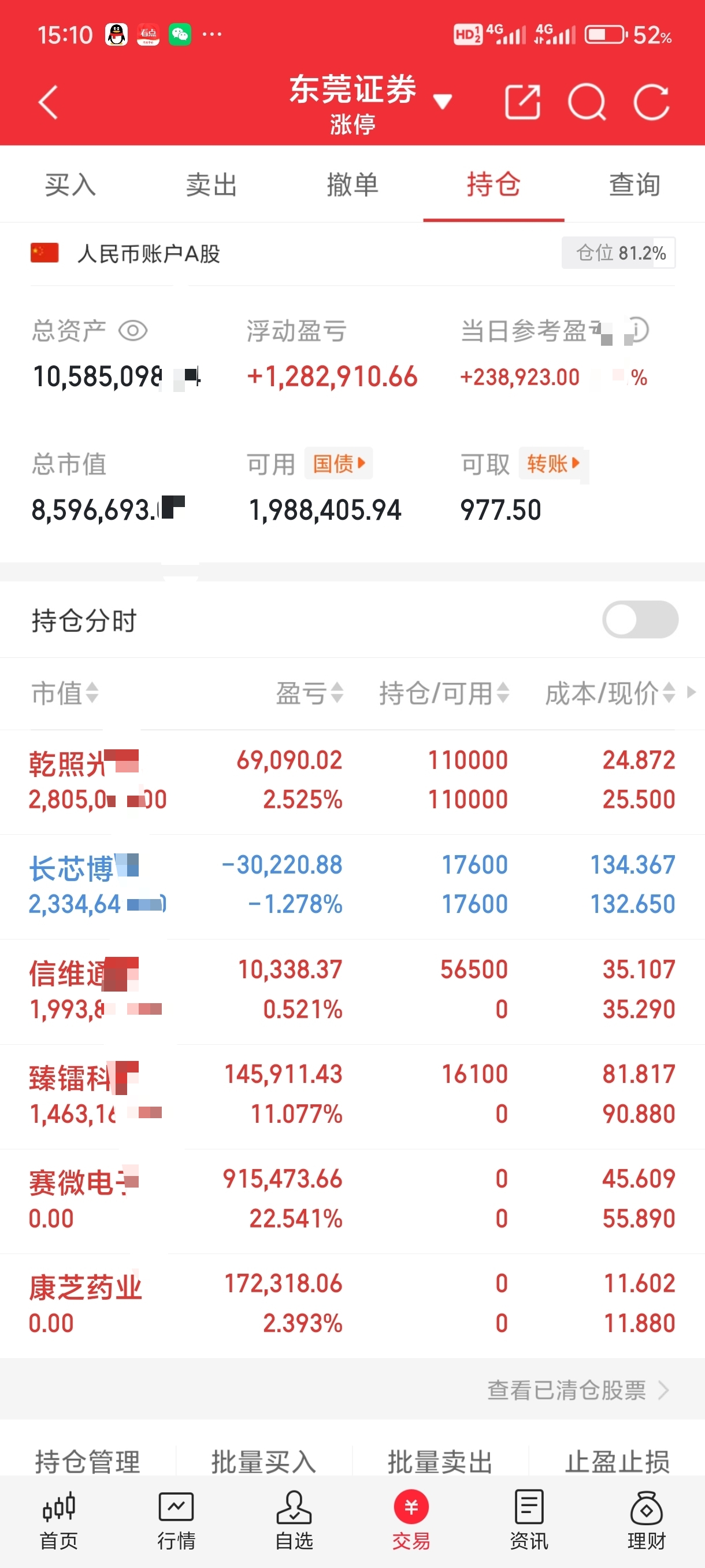 今日按计划执行纪律, 持有乾照光电,长芯博创,新开了臻雷科技,信维通信 。每一笔操作都是实时更新。