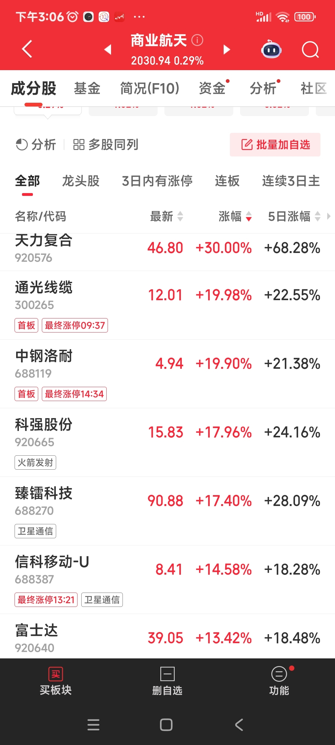 今天商业航天21个涨停,连沾一点儿商业航天的顺灏收盘涨7%,卫星小翅膀不行呀……