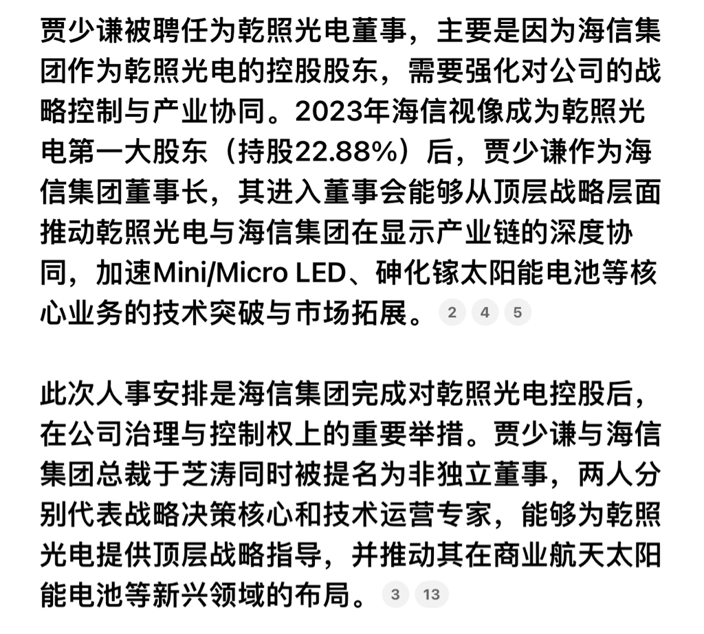 $乾照光电(SZ300102)$ 贾少谦 于之涛聘任为董事将推动商业航天太阳能电池等新兴领域的布局