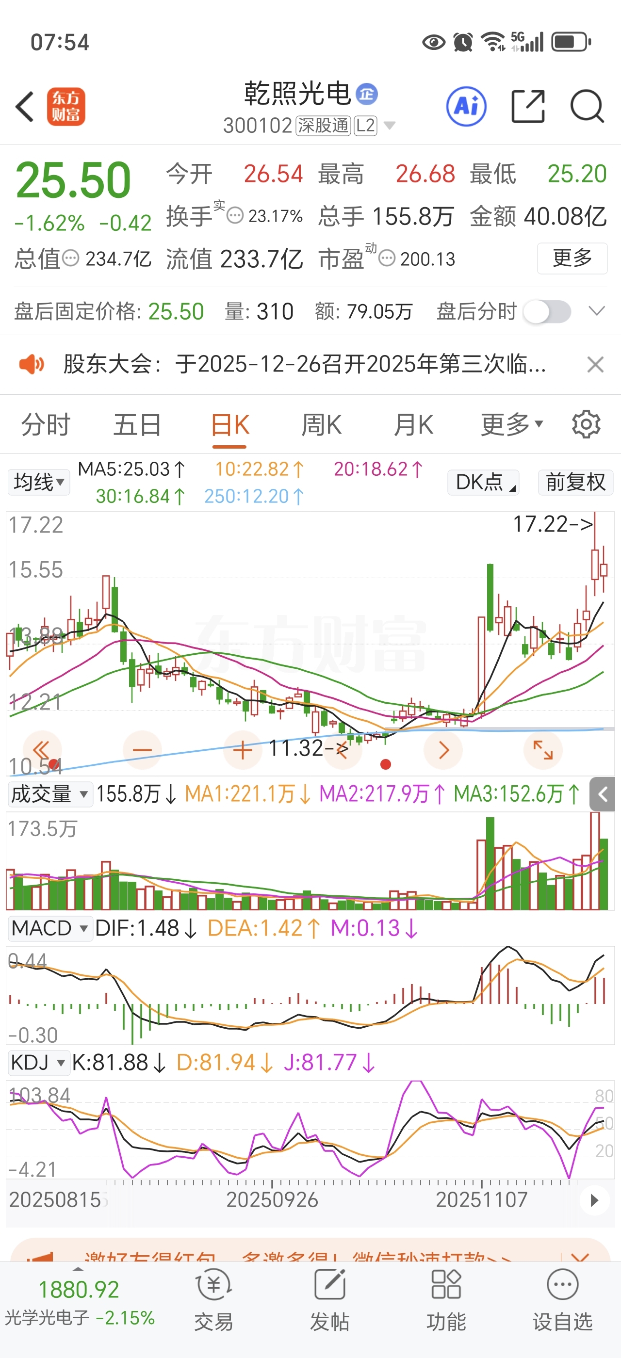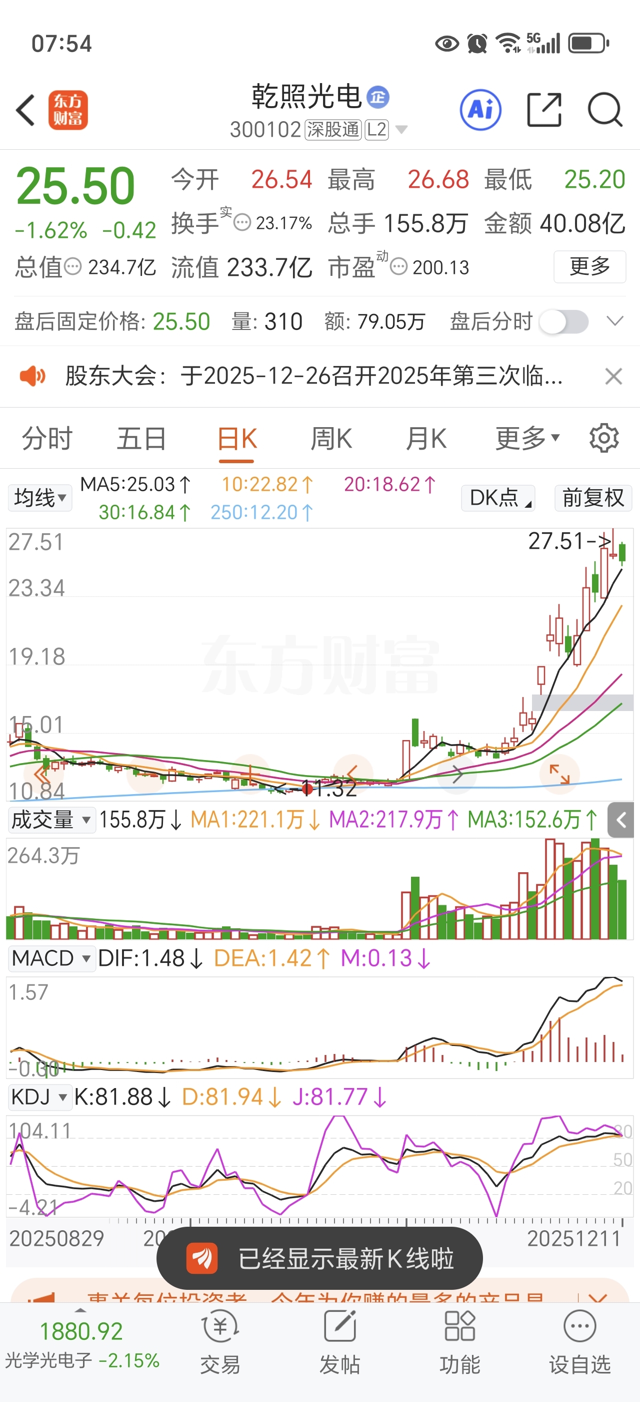 不用给我面子主力,今天狠狠拉个20cm,周末可以人气第一,复制一波乾照光电的日线