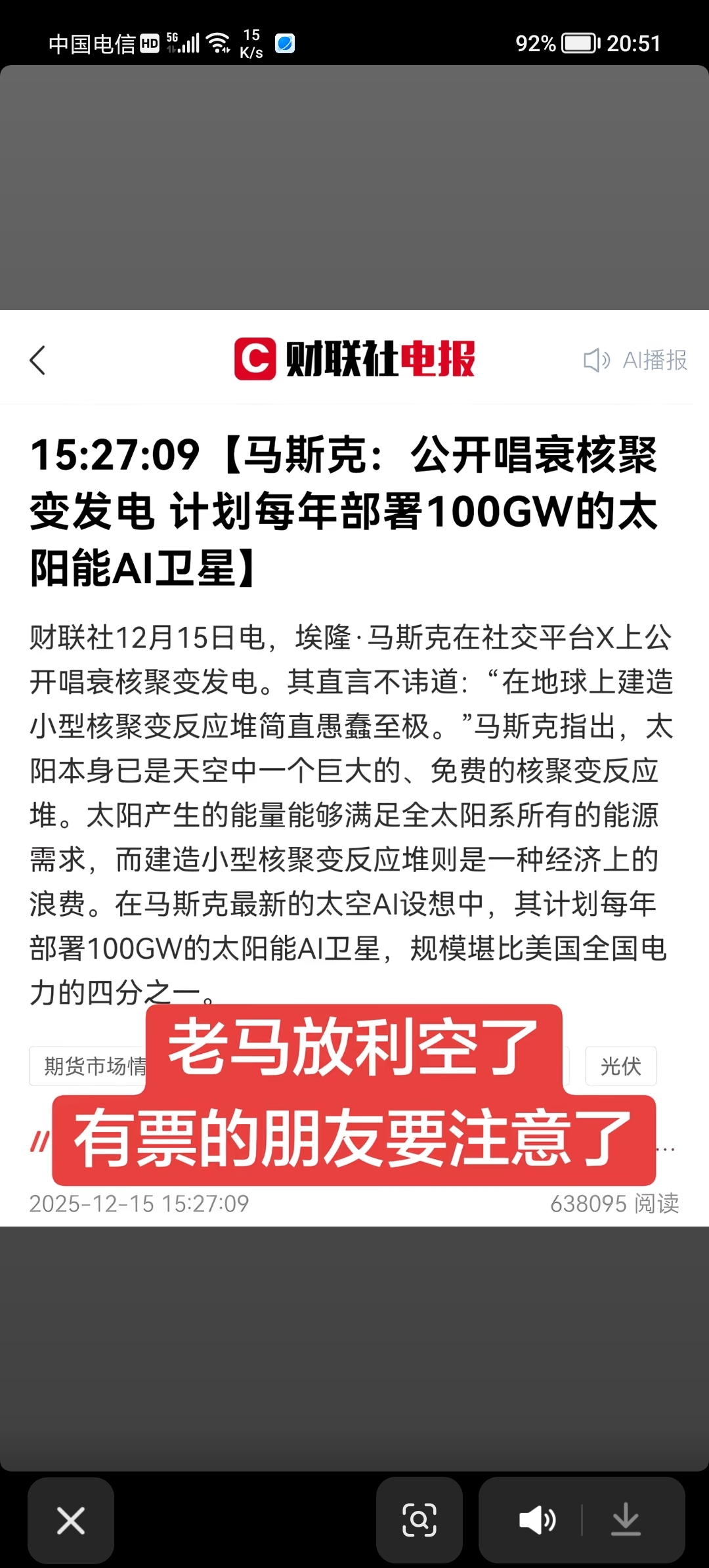 郑重声明:用户在财富号/股吧/博客等社区发表的所有信息(包括但不限于文字、视频、音频、数据及图表)仅代表个人观点,与本网站立场无关,不对您构成任何投资建议,据此操作风险自担。请勿相信代客理财、免费荐股和炒股培训等宣传内容,远离非法证券活动。请勿添加发言用户的手机号码、公众号、微博、微信及QQ等信息,谨防上当受骗!