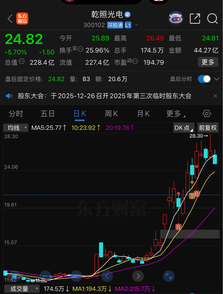 $乾照光电(SZ300102)$ 这么久才第一天跌破5日线,明天就给你站上去了,10日线附近再加点