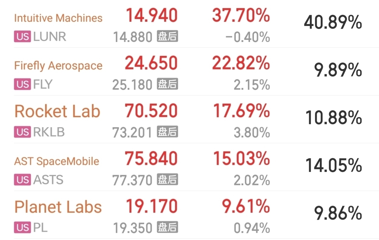 美股商业航天涨破天了,周一直接起爆