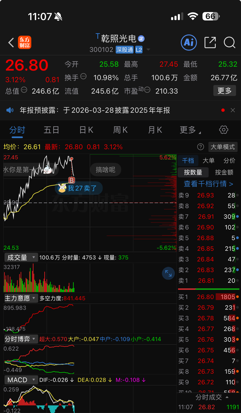 $乾照光电(SZ300102)$ 这是针对我呀观察一上午出手就被砸