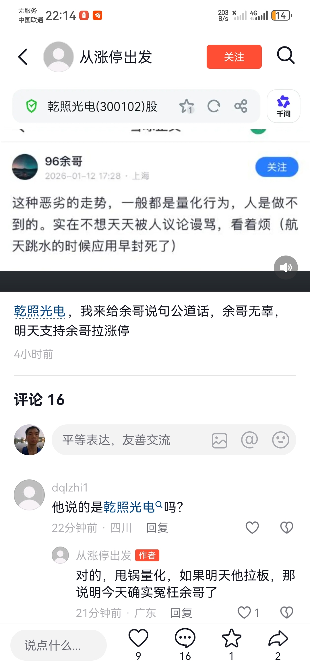 温馨提示: 1.根据《证券法》规定,禁止编造、传播虚假信息或者误导性信息,扰乱证券市场;2.用户在本社区发表的所有资料、言论等仅代表个人观点,与本网站立场无关,不对您构成任何投资建议。用户应基于自己的独立判断,自行决定证券投资并承担相应风险。《东方财富社区管理规定》