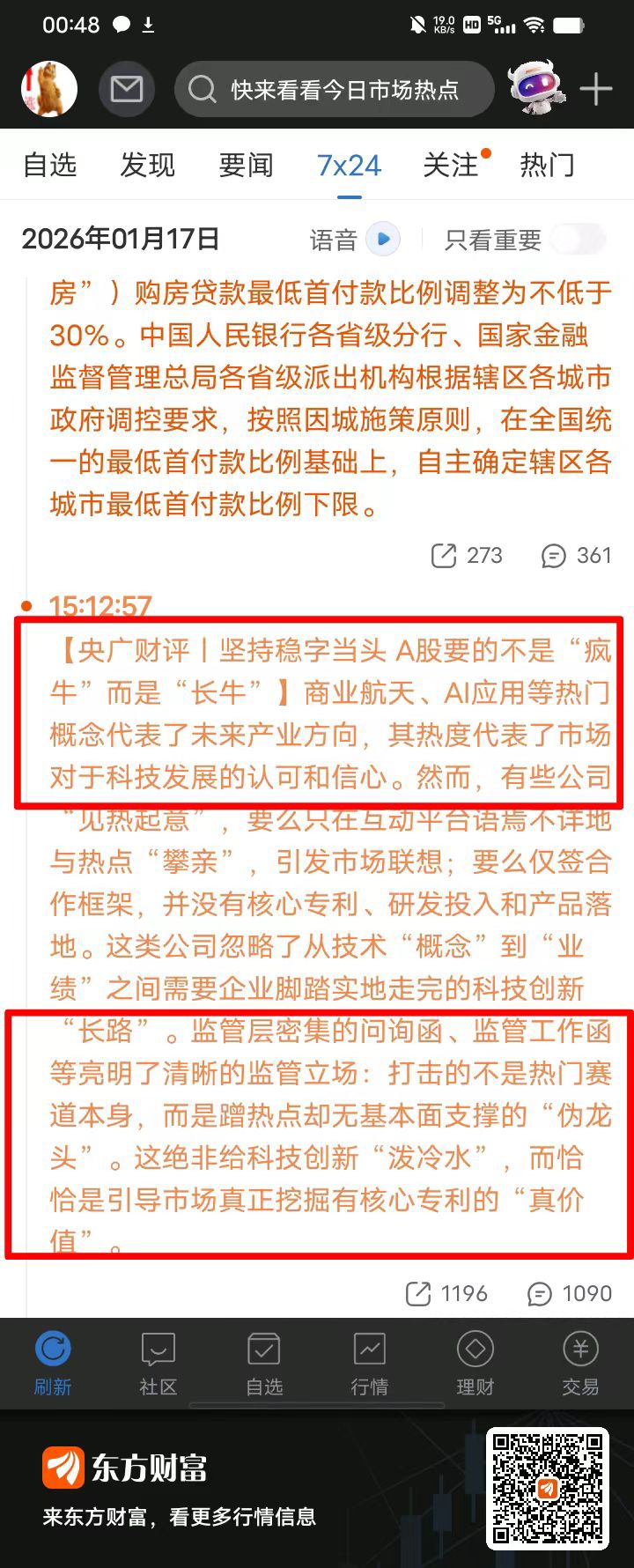 “A股要的不是‘疯牛’,而是‘长牛’。商业航天、AI应用代表未来产业方向,市场对科技的信心值得肯定。”