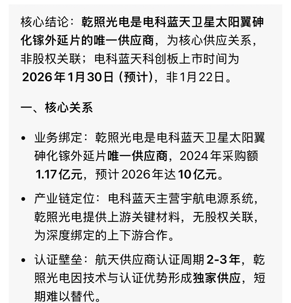 $乾照光电(SZ300102)$ 电科蓝天今天敲定上市时间对乾照光电肯定是好事
