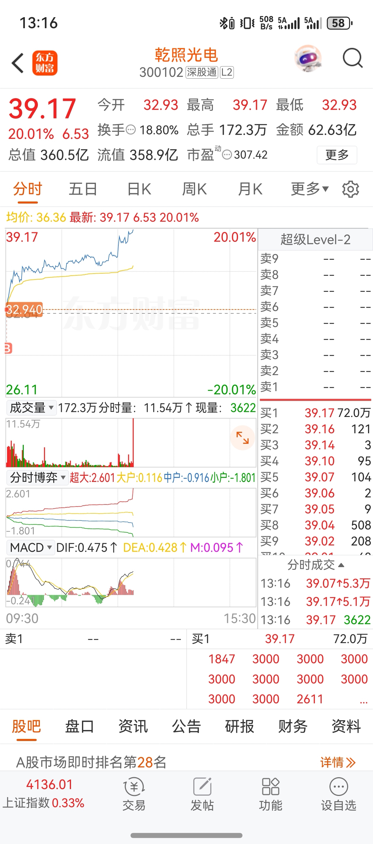 $乾照光电(SZ300102)$ 早盘集合进价进去的!