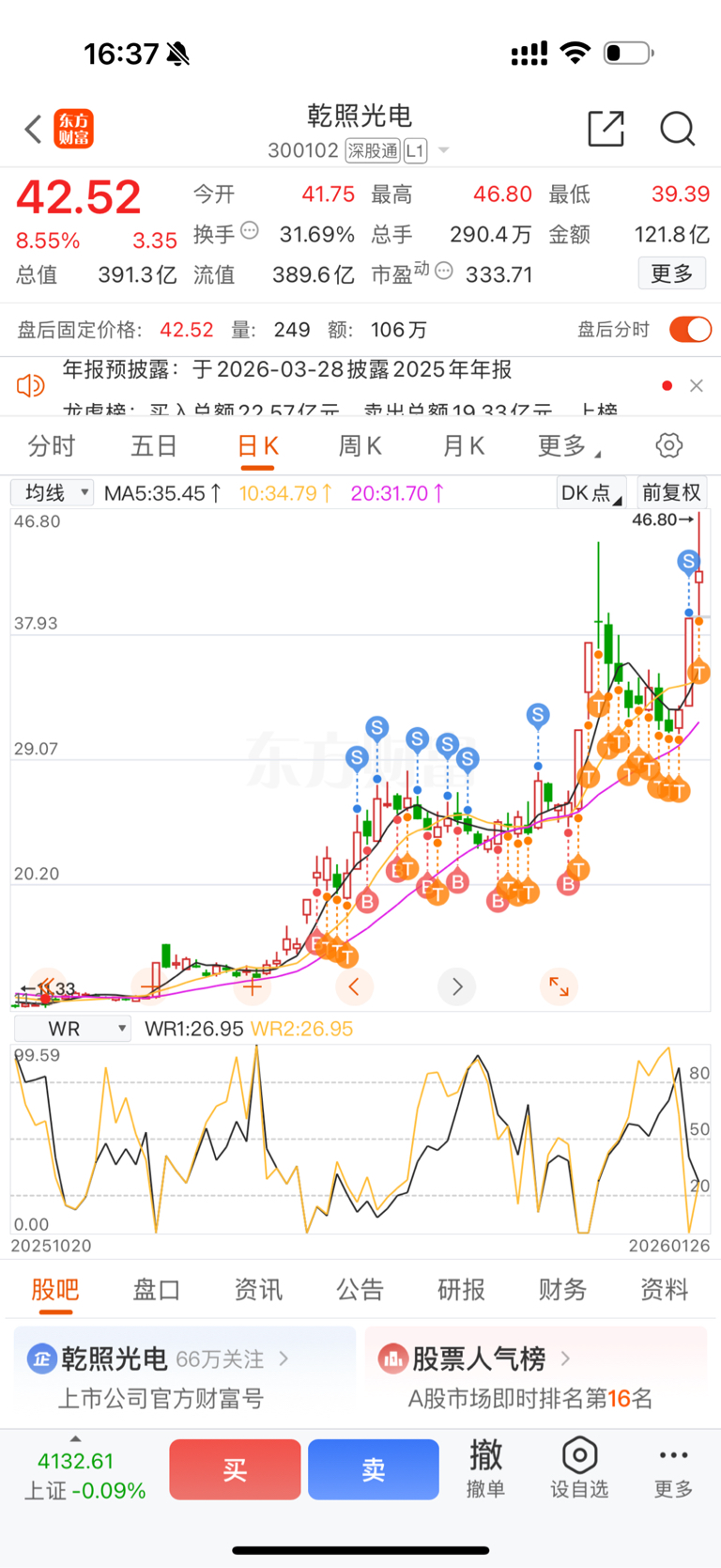 $乾照光电(SZ300102)$ 吃满了三波主升,坚持终有收获,静待花开。